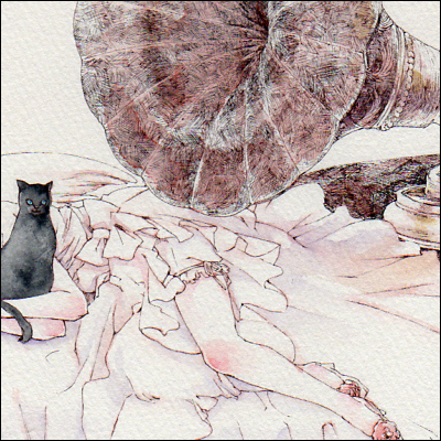 蓄音機は、描いててデッサン時代を思い出してうっかり鉛筆でがっちり描き込んでしまいそうになりました 笑