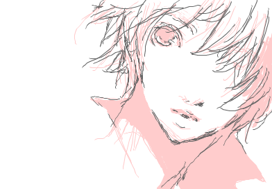 本当は全身描いたんですが、諸事情により全貌は見せられない上に、この期に及んでパースが狂っているので(身長2m近い人になってしまったのでありますorz)上半身だけ。