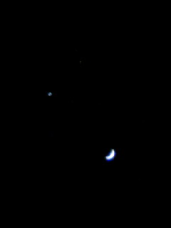 写真は数日前に見た「三日月と木星と金星」の画像です。珍しく母からメールが来たと思ったら、『今日の月を拝むとお金に困らないそうです』との事らしく…。